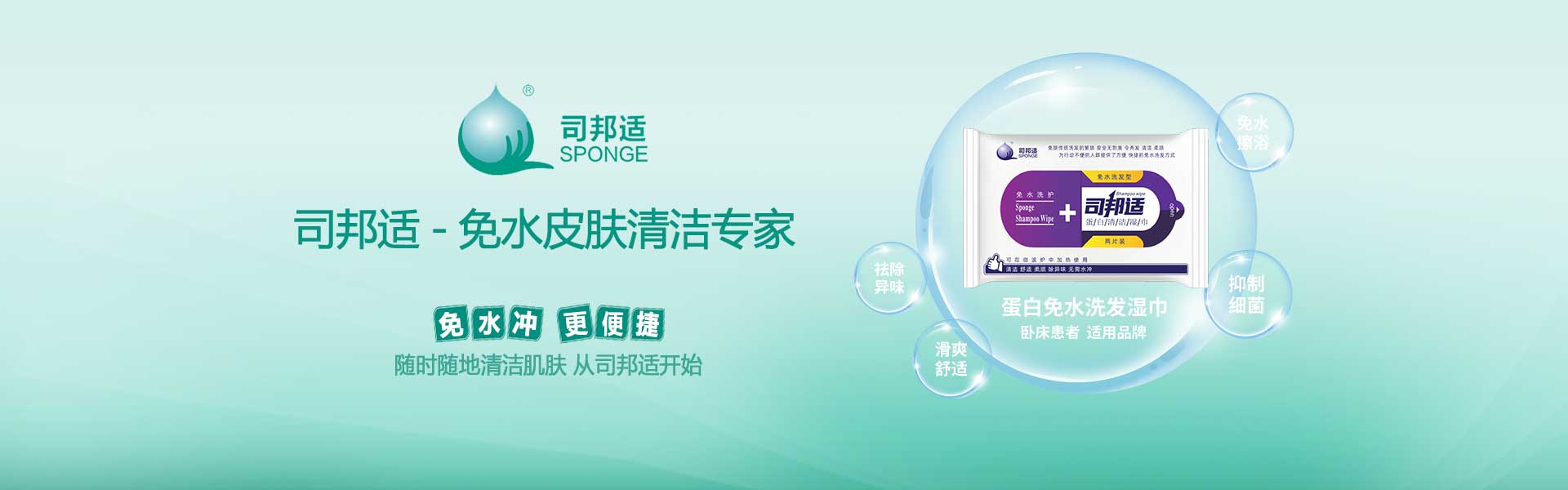 ? ? ? ?本公司研發(fā)的司邦適蛋白表面活性因子,不僅對人體皮膚及粘膜沒有刺激,同時具有對皮膚很強的清潔能力;可以祛除人體皮膚上的異味,并且具有較強的抑菌功效。使用后無需用水沖洗皮膚仍感到舒適爽滑;基于上述原因我們研發(fā)的司邦適免水清潔系列產品。主要適用于各種主觀或者客觀上不方便全身或局部皮膚清潔的人群。